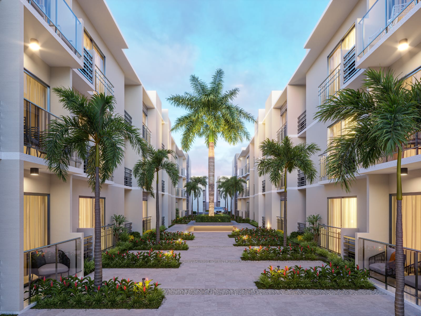 Apartamentos de 1, 2 y 3 habitaciones en edificios de 3 niveles (12 aptos. por nivel, 36 aptos. en el edificio)
